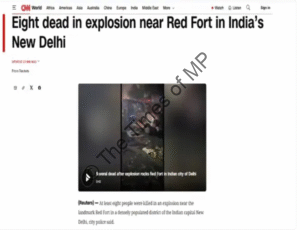नई दिल्ली: राष्ट्रीय राजधानी दिल्ली के ऐतिहासिक लाल किले के पास सोमवार शाम हुए भीषण कार ब्लास्ट की गूंज पूरी दुनिया में सुनाई दी है। इस घटना को पाकिस्तानी मीडिया ने जहाँ ‘ब्लास्ट ने भारत को हिला दिया’ शीर्षक से प्रमुखता दी, वहीं ब्रिटिश BBC और अमेरिकी CNN जैसे प्रमुख वैश्विक मीडिया आउटलेट्स ने भी इसे ‘भारतीय राजधानी’ को दहलाने वाली घटना बताया है। इस धमाके में कम से कम 8 लोगों की मौत हुई है, जबकि 24 घायल हैं।