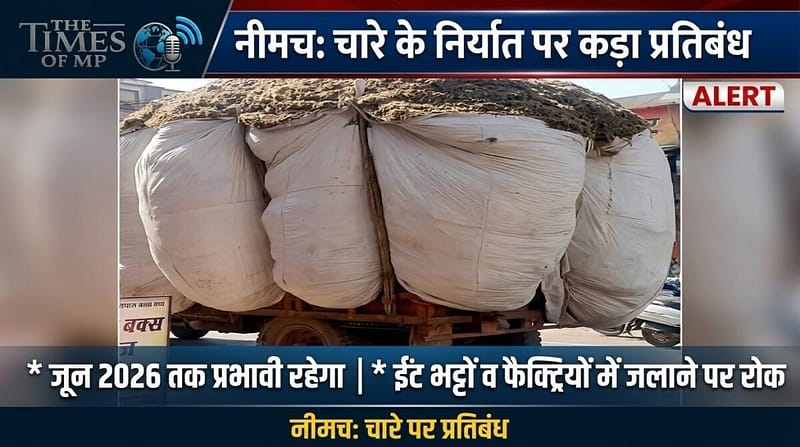 नीमच । मध्य प्रदेश के नीमच जिले में पशुओं के लिए चारे की संभावित कमी को देखते हुए जिला प्रशासन ने बड़ा और सख्त कदम उठाया है। कलेक्टर एवं जिला दंडाधिकारी हिमांशु चंद्रा के निर्देश पर जिले में चारा प्रतिबंध (Fodder Ban) लागू कर दिया गया है। यह आदेश तत्काल प्रभाव से लागू हो गया है और 30 जून 2026 तक प्रभावी रहेगा।