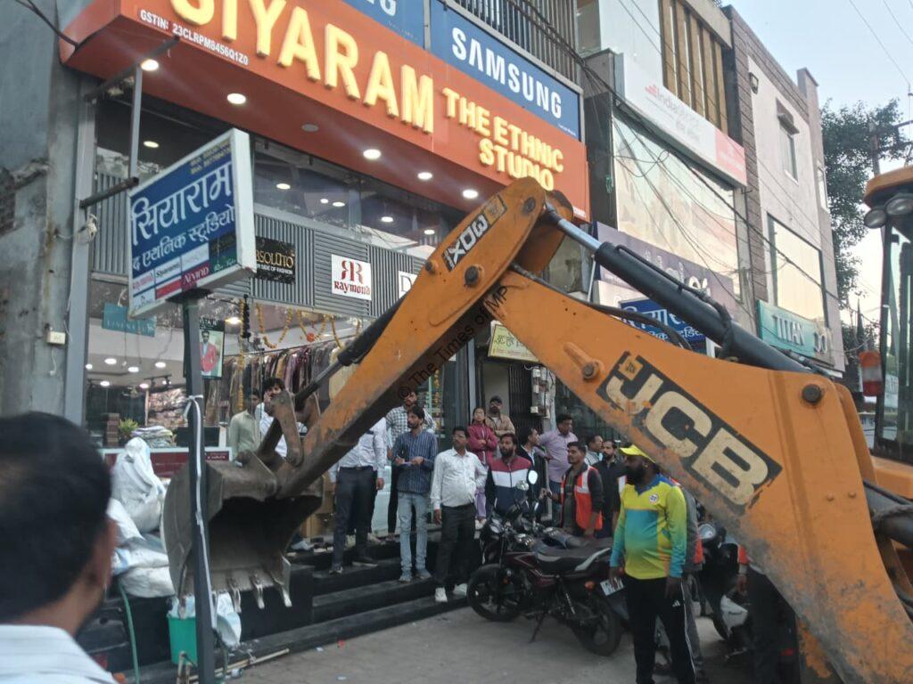 गायत्री मंदिर मार्ग पर चला अतिक्रमण विरोधी अभियान, आवागमन में बाधा बने ढांचे हटाए