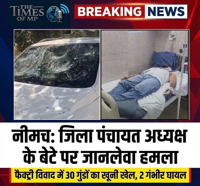 नीमच। मध्य प्रदेश के नीमच जिले में कानून व्यवस्था को चुनौती देती एक बड़ी वारदात सामने आई है। सगराना स्थित एक औद्योगिक इकाई अब जंग का मैदान बन चुकी है। जिसे अब Gold Crash Factory Controversy (विवाद)के नाम से देखा जा रहा है। इस विवाद ने शुक्रवार को उस वक्त हिंसक रूप ले लिया, जब जिला पंचायत अध्यक्ष सज्जन सिंह चौहान के बेटे और भांजे पर 30 से ज्यादा लोगों ने जानलेवा हमला कर दिया। इस घटना के बाद से ही पुलिस प्रशासन में हड़कंप मचा हुआ है और पूरा इलाका पुलिस छावनी में तब्दील हो गया है।