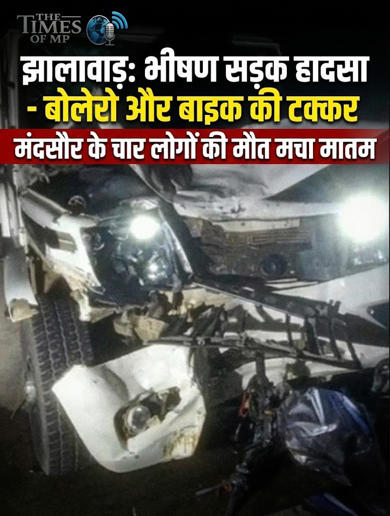 झालावाड़। राजस्थान और मध्य प्रदेश की सीमा पर शुक्रवार देर शाम एक बेहद दर्दनाक सड़क हादसा सामने आया है। राजस्थान के झालावाड़ जिले में हुई एक भीषण सड़क दुर्घटना ने मध्य प्रदेश के मंदसौर जिले में मातम फैला दिया है। इस भयानक झालावाड़ सड़क दुर्घटना (Jhalawar Accident )में बोलेरो और एक मोटरसाइकिल की आमने-सामने की जोरदार भिड़ंत हो गई, जिसमें 4 लोगों की मौके पर ही दर्दनाक मौत हो गई।