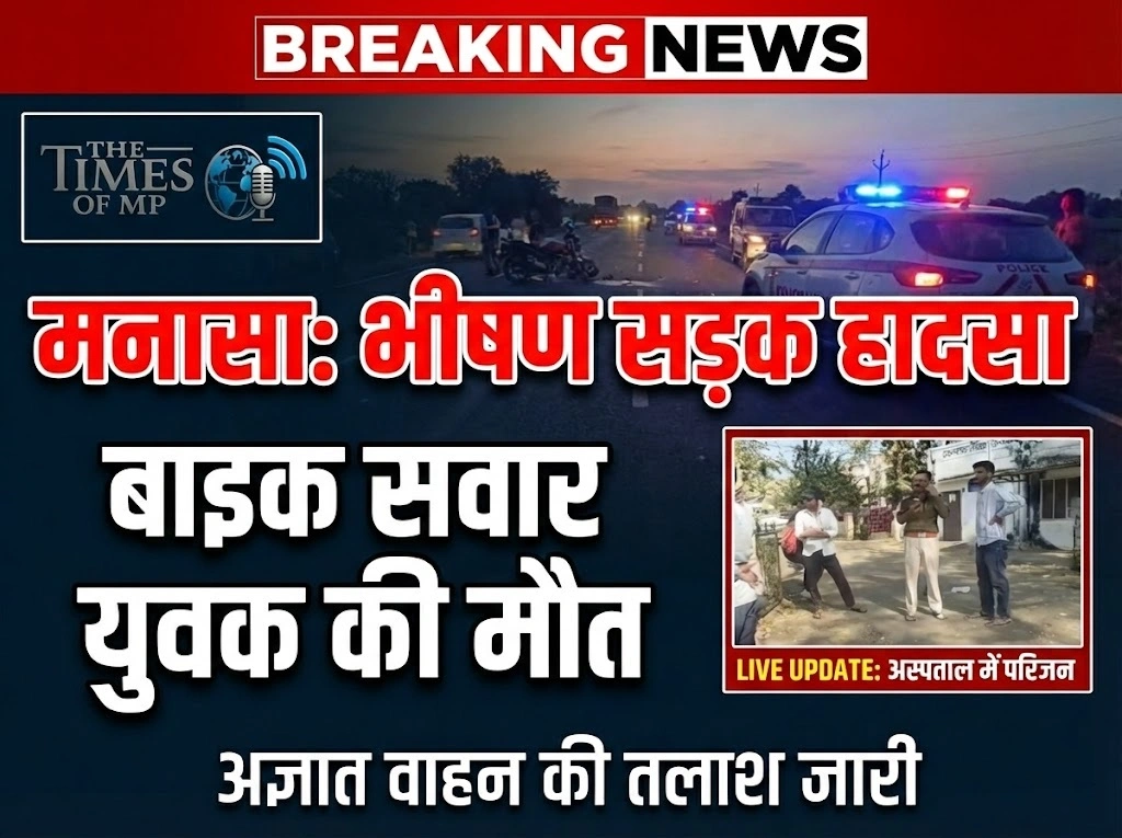 मनासा (MP NEWS) मध्यप्रदेश के नीमच जिले में सड़क हादसों का सिलसिला थमने का नाम नहीं ले रहा है। सोमवार की शाम नीमच जिले के मनासा थाना क्षेत्र के अंतर्गत एक और हृदय विदारक मनासा सड़क दुर्घटना सामने आई है। इस भीषण हादसे में एक 19 वर्षीय होनहार युवक की असमय मृत्यु हो गई। अज्ञात वाहन की रफ्तार इतनी भयावह थी कि बाइक सवार युवक को संभलने का एक क्षण भी नहीं मिला और वह सीधे मौत के आगोश में समा गया। इस घटना के बाद से मृतक के गांव मालखेड़ा में सन्नाटा पसरा हुआ है और परिजनों का रो-रोकर बुरा हाल है।