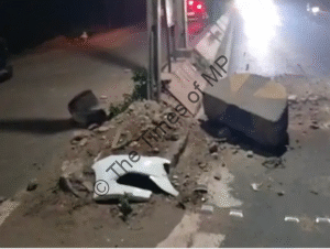 नीमच, मध्य प्रदेश। नीमच के गोमाबाई रोड पर गुरुवार देर रात रफ्तार के जुनून ने एक बड़ा हादसा होते-होते टाल दिया। एक तेज रफ्तार कार (RJ 14 CX 9851) संजीवनी नाले के पास बेकाबू होकर सड़क के डिवाइडर को तोड़ती हुई, अंततः एक विद्युत पोल से जा टकराई। टक्कर इतनी भीषण थी कि कार का अगला हिस्सा बुरी तरह क्षतिग्रस्त हो गया, वहीं डिवाइडर और बिजली का खंभा भी टूट गया। गनीमत रही कि हादसे के वक्त सड़क पर कोई राहगीर या अन्य वाहन मौजूद नहीं था, जिसके चलते कोई जनहानि नहीं हुई और कार चालक को भी कोई गंभीर चोट नहीं आई।