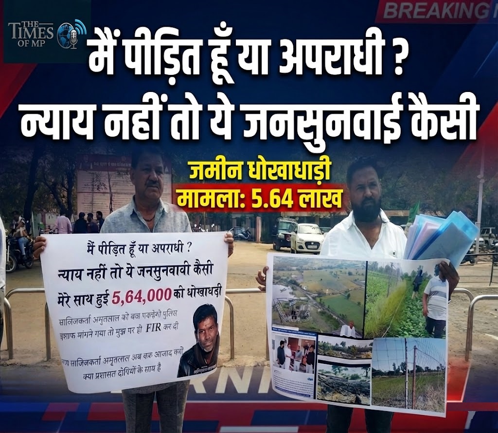 नीमच( MP NEWS)। जमीन धोखाधड़ी मामला (Land Fraud) जिला कलेक्टर कार्यालय में मंगलवार को आयोजित साप्ताहिक जनसुनवाई उस समय एक गंभीर चर्चा का केंद्र बन गई, जब हनुमान नगर निवासी विष्णु शर्मा हाथ में दस्तावेजों का पुलिंदा लेकर अधिकारियों के समक्ष पेश हुए। उनके चेहरे पर छाई मायूसी और आक्रोश ने वहां मौजूद हर शख्स का ध्यान अपनी ओर खींच लिया। व्यवस्था पर सवाल उठाते हुए उन्होंने भरे गले से पूछा— “साहब, न्याय नहीं तो यह जनसुनवाई कैसी? इस जमीन धोखाधड़ी मामला (Land Fraud) केस में मैं पीड़ित हूं या अपराधी?”