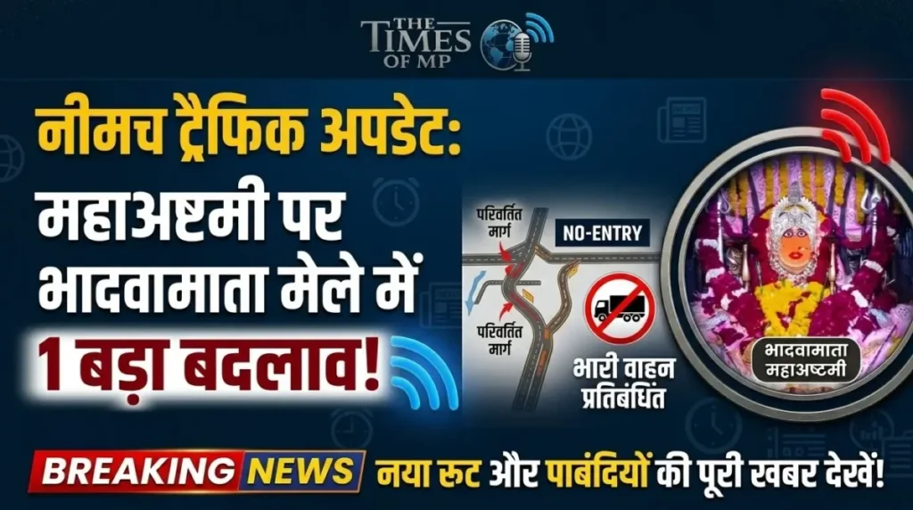 भादवामाता मंदिर में महाअष्टमी के अवसर पर न केवल नीमच बल्कि पड़ोसी जिलों और राजस्थान से भी बड़ी संख्या में पदयात्री और वाहन सवार श्रद्धालु पहुँचते हैं। भीड़ का दबाव इतना अधिक होता है कि सामान्य दिनों की तुलना में यातायात व्यवस्था संभालना एक बड़ी चुनौती बन जाती है। इसी जमीनी हकीकत को देखते हुए अतिरिक्त पुलिस अधीक्षक नवलसिंह सिसोदिया और नगर पुलिस अधीक्षक सुश्री किरण चौहान के मार्गदर्शन में Neemuch Traffic Update का विस्तृत ट्रैफिक प्लान तैयार किया गया है।