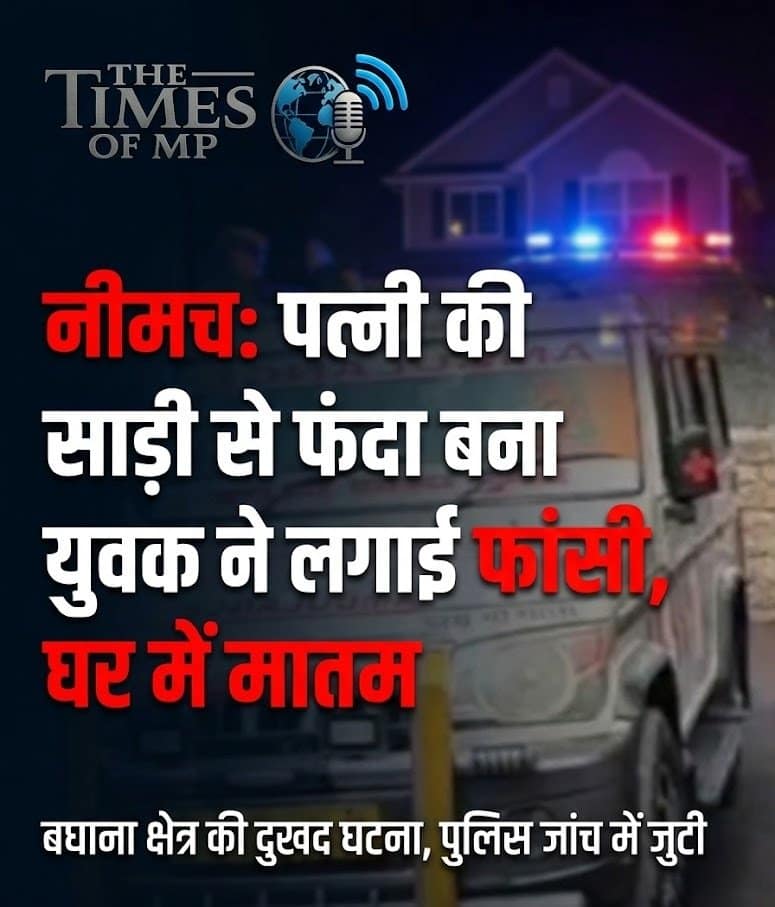 नीमच (The Times of MP)। मध्यप्रदेश के नीमच जिले से एक रोंगटे खड़े कर देने वाली खबर सामने आई है, जहाँ एक हंसते-खेलते परिवार की खुशियाँ पल भर में मातम में बदल गईं। नीमच शहर के बघाना थाना अंतर्गत आने वाले हवाई पट्टी नई आबादी क्षेत्र में एक 31 वर्षीय युवक ने अज्ञात कारणों के चलते आत्महत्या (Suicide) कर लिया। इस आत्मघाती कदम ने न केवल मृतक के परिवार को पूरी तरह झकझोर कर रख दिया है, बल्कि पूरे जिले में इस घटना को लेकर सन्नाटा पसरा हुआ है। पुलिस अब इस आत्महत्या (Suicide) के पीछे छिपे असली कारणों की बारीकी से तलाश कर रही है।